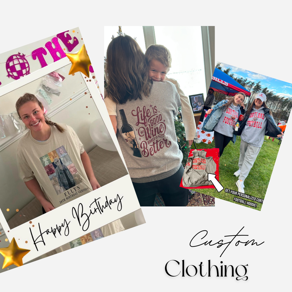 Hey there! We're a small custom clothing shop, and our goal is pretty simple — to make you something that's totally you. Whether you're looking for a design that’s all your own or just want a little personal touch, we’ve got you covered. Each piece is made with care and attention, so you get exactly what you're looking for!